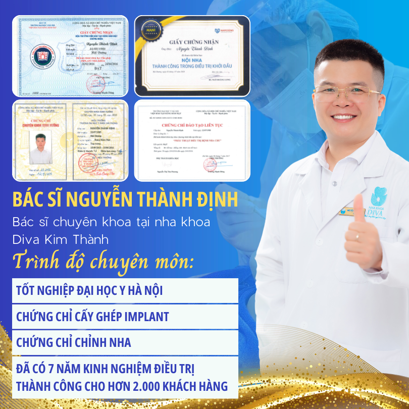 Bác sĩ Nguyễn Thành Định là bác sĩ chuyên khoa tận tâm, tận tình và rất thân thiện được khách hàng tại nha khoa Diva yêu quý. Với kinh nghiệm dày dặn, bác sĩ đã khám và điều trị hàng nghìn case Implant, thẩm mỹ răng hàm mặt.