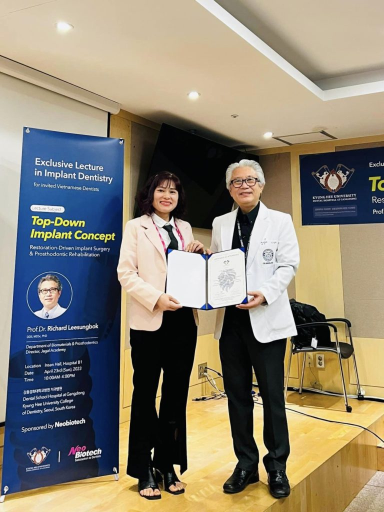 Sau nhiều năm trau dồi kiến thức về quy trình tải lực tức thì trên Implant từ Đại Học Y Hải phòng và tham gia chuyên sâu các hội thảo trong và ngoài nước, Dr. Hằng đã có kiến thức sâu rộng và kỹ năng vững vàng trong việc cải thiện hàm răng và chức năng ăn nhai cho khách hàng mất toàn bộ răng bằng phương pháp all4 và all6.